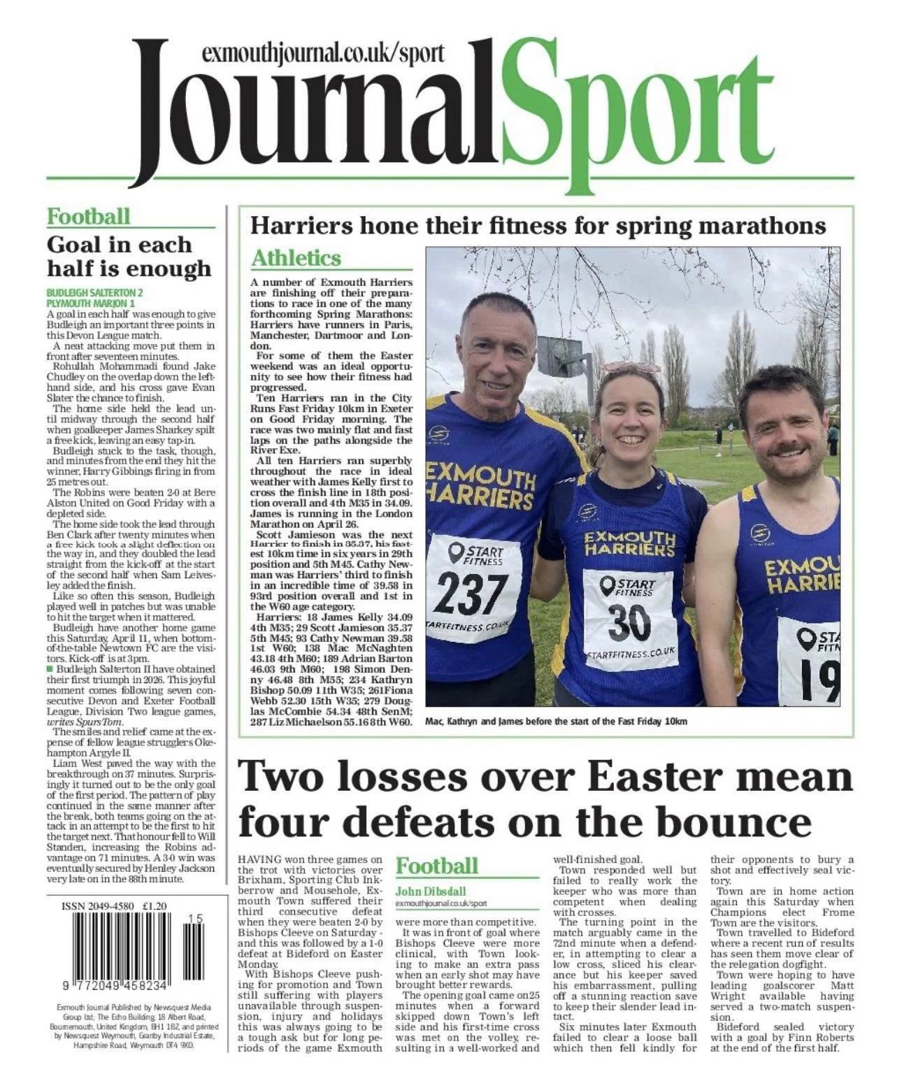 Exmouth Harriers April 8, 2026 Harriers hone fitness for spring marathons Exmouth Harriers April 8, 2026